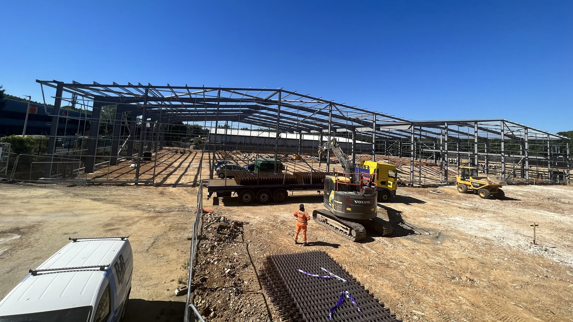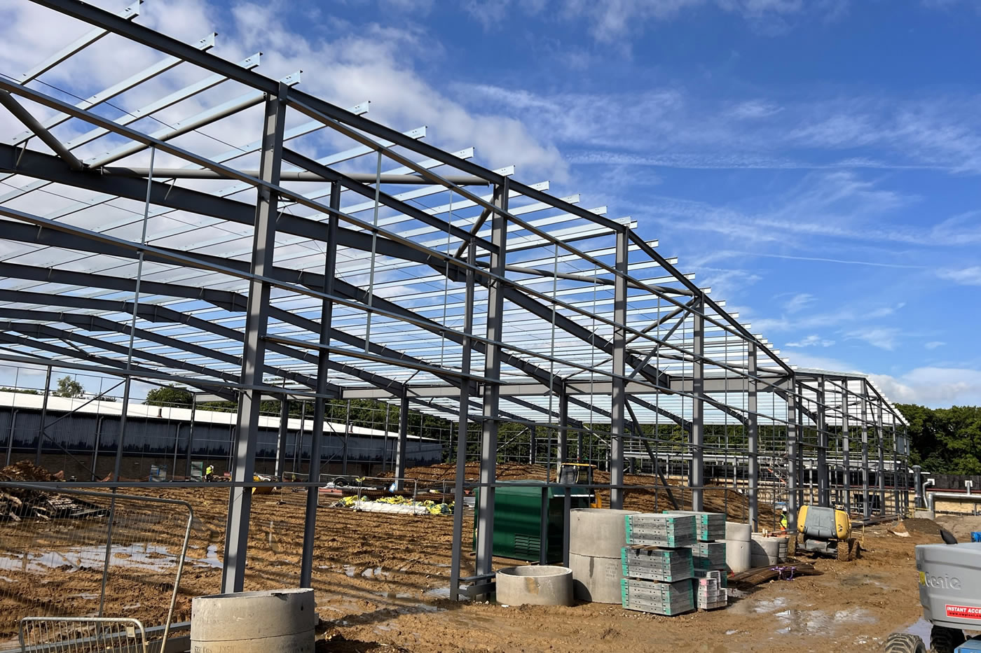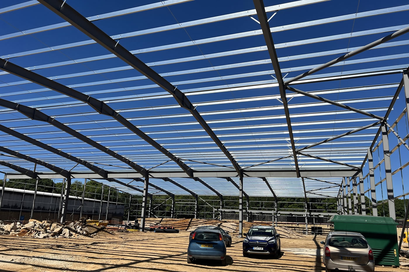 Demolition of existing building and full site clearance, including notifiable asbestos removal. Full site levelling and remediation prior to installation of new below ground drainage system, attenuation tanks, foundations, steel frame, built up cladding, and composite roof to delivery a bespoke 5,000sqm industrial unit.