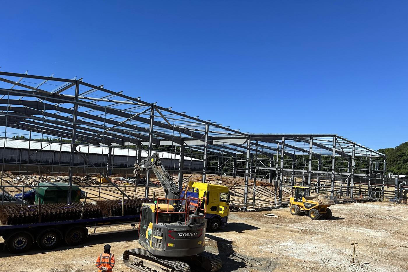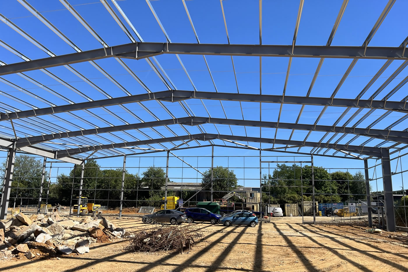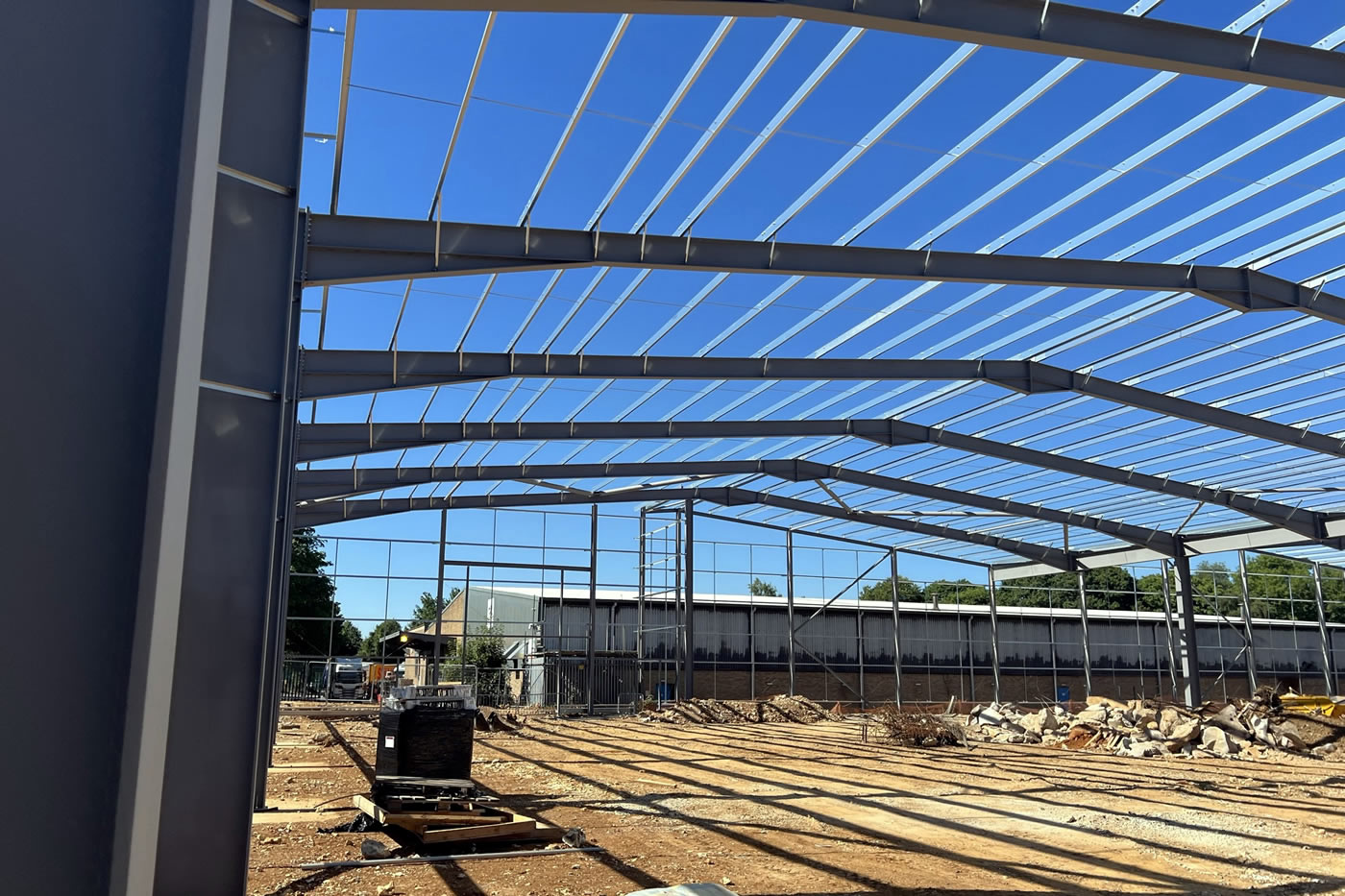 Demolition of existing building and full site clearance, including notifiable asbestos removal. Full site levelling and remediation prior to installation of new below ground drainage system, attenuation tanks, foundations, steel frame, built up cladding, and composite roof to delivery a bespoke 5,000sqm industrial unit.