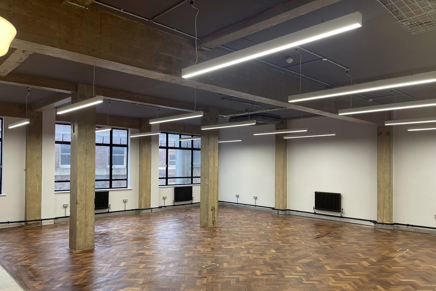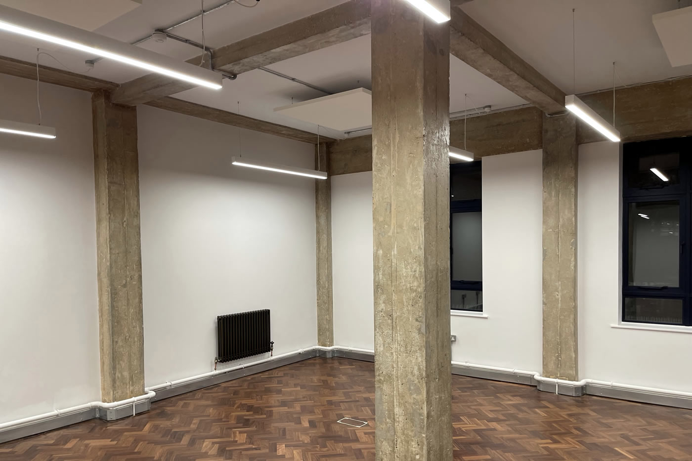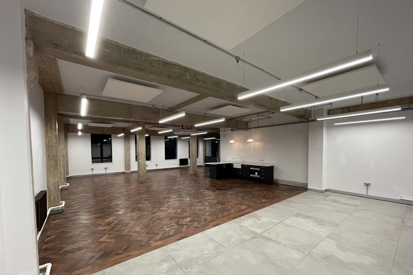Strip Out, structural alteration, sub division and conversion to residential apartments of former multi-storey office building. Including external fabric repairs, installation of new aluminium framed windows, liquid and pitched tiled roofing, acoustic raised flooring, metsec partitioning and dry lining, new utility supplies, full mechanical and electrical installations, smoke risers, decorations, flooring, tiling and full fit out of 26no. units to a highly specified quality.