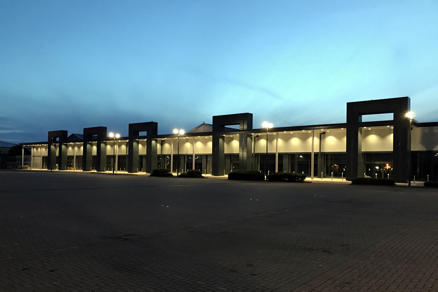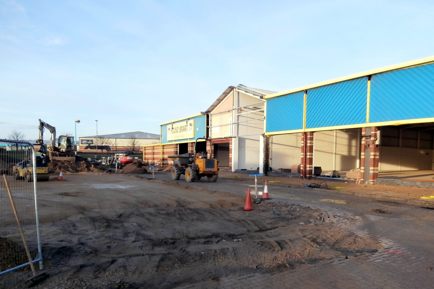 Retail park refurbishment and alteration. Complete strip out of 4 units, replacement rooflights, Giromax coating to roof and gutters, demolition of entrance features, construction of colonnade, over cladding, opening alterations and new aluminium entrance screens, brick tinting, reconfiguration of carpark layout, formation of new entrance way, rear yard extension and sheet retaining wall, internal remedial works and decorations.